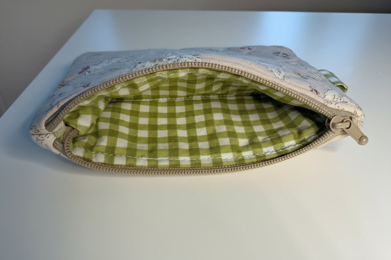 Keep your coins and small essentials organized in style with our beautifully crafted Quilted Coin Pouch. This charming accessory features elegant quilted stitching that adds texture and sophistication to your everyday carry, with delightful cat print outer fabric and a cheerful green gingham interior.